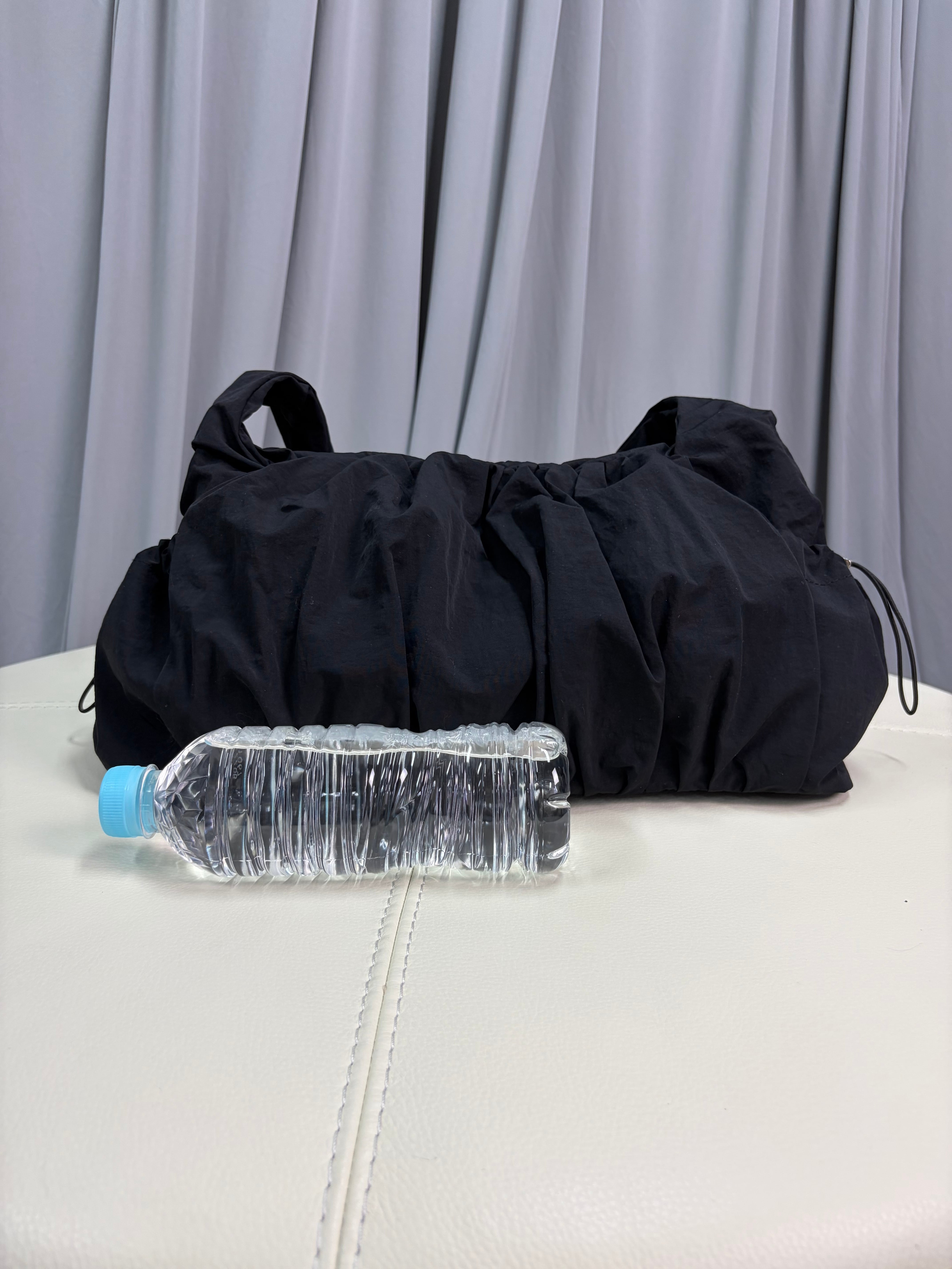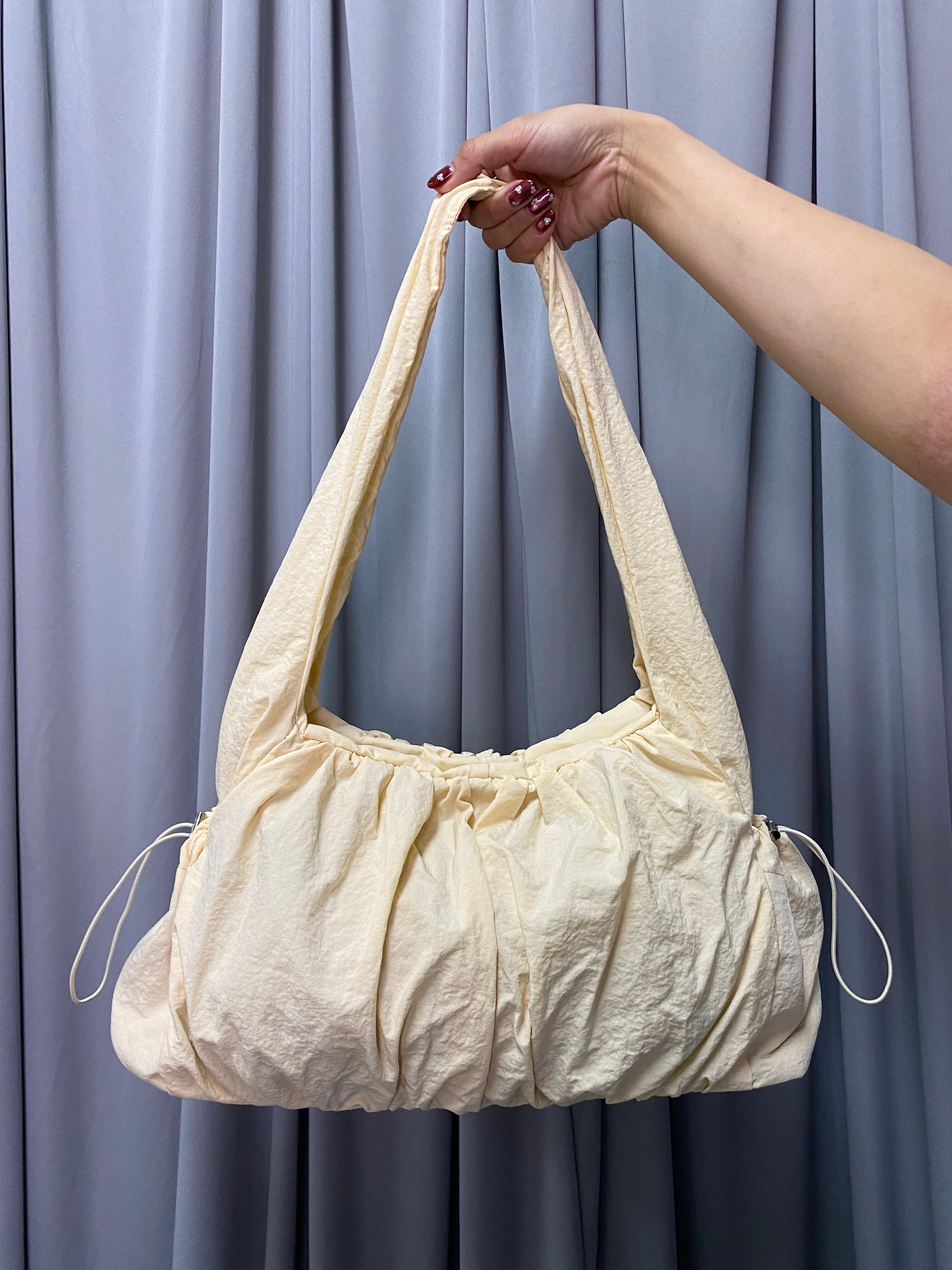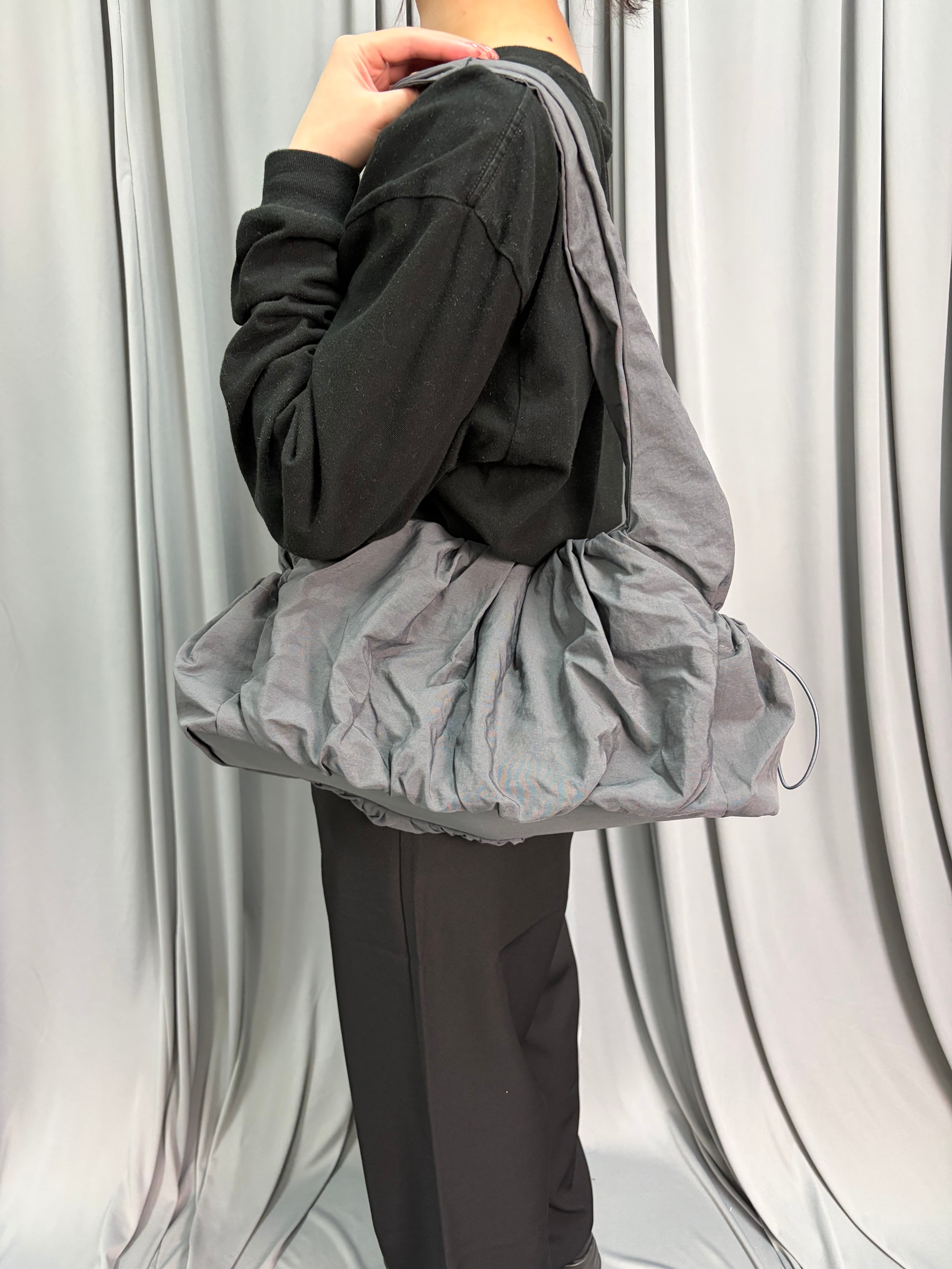 “くしゅっ”としたフォルムがかわいいナイロントートバック。