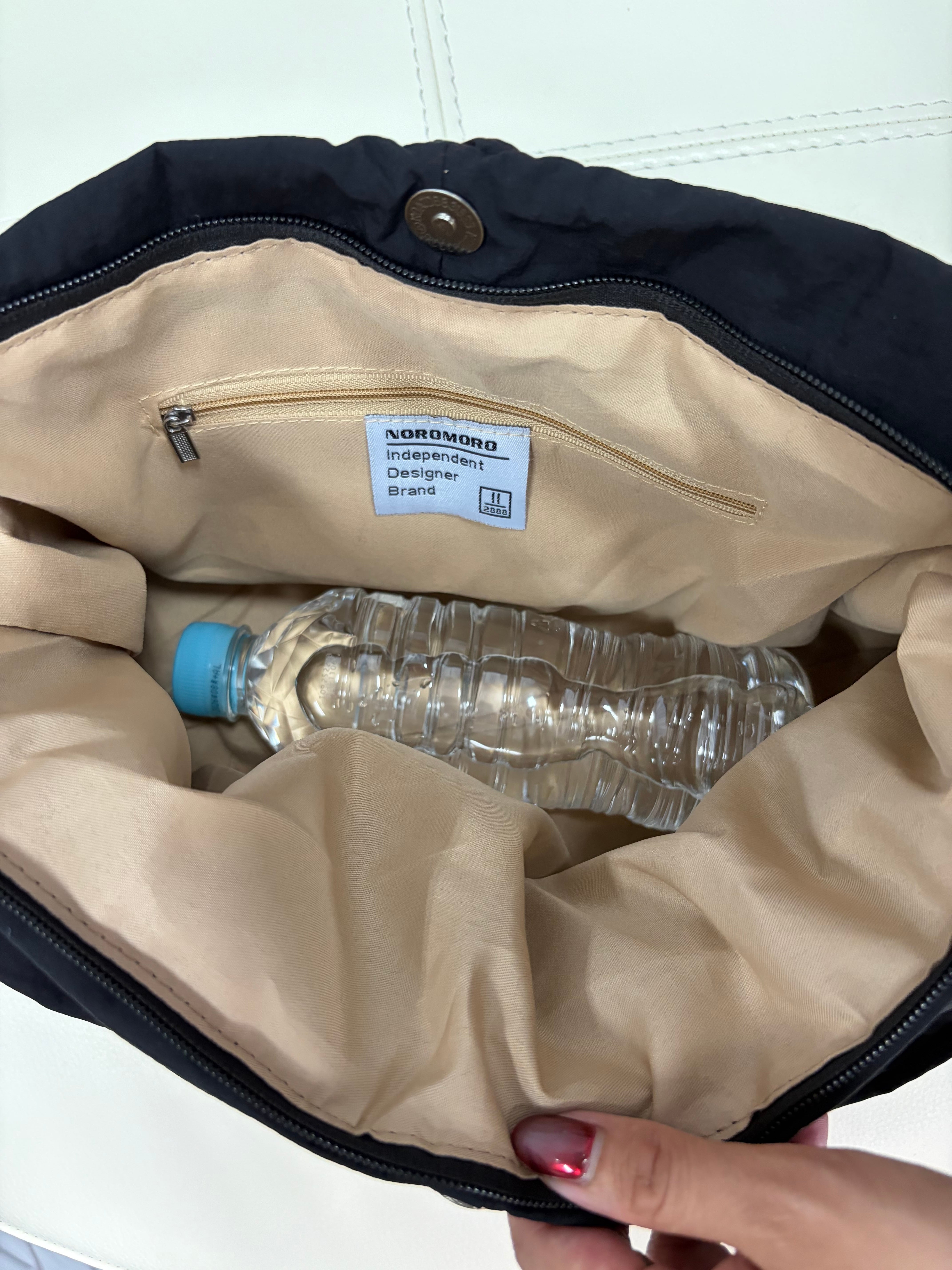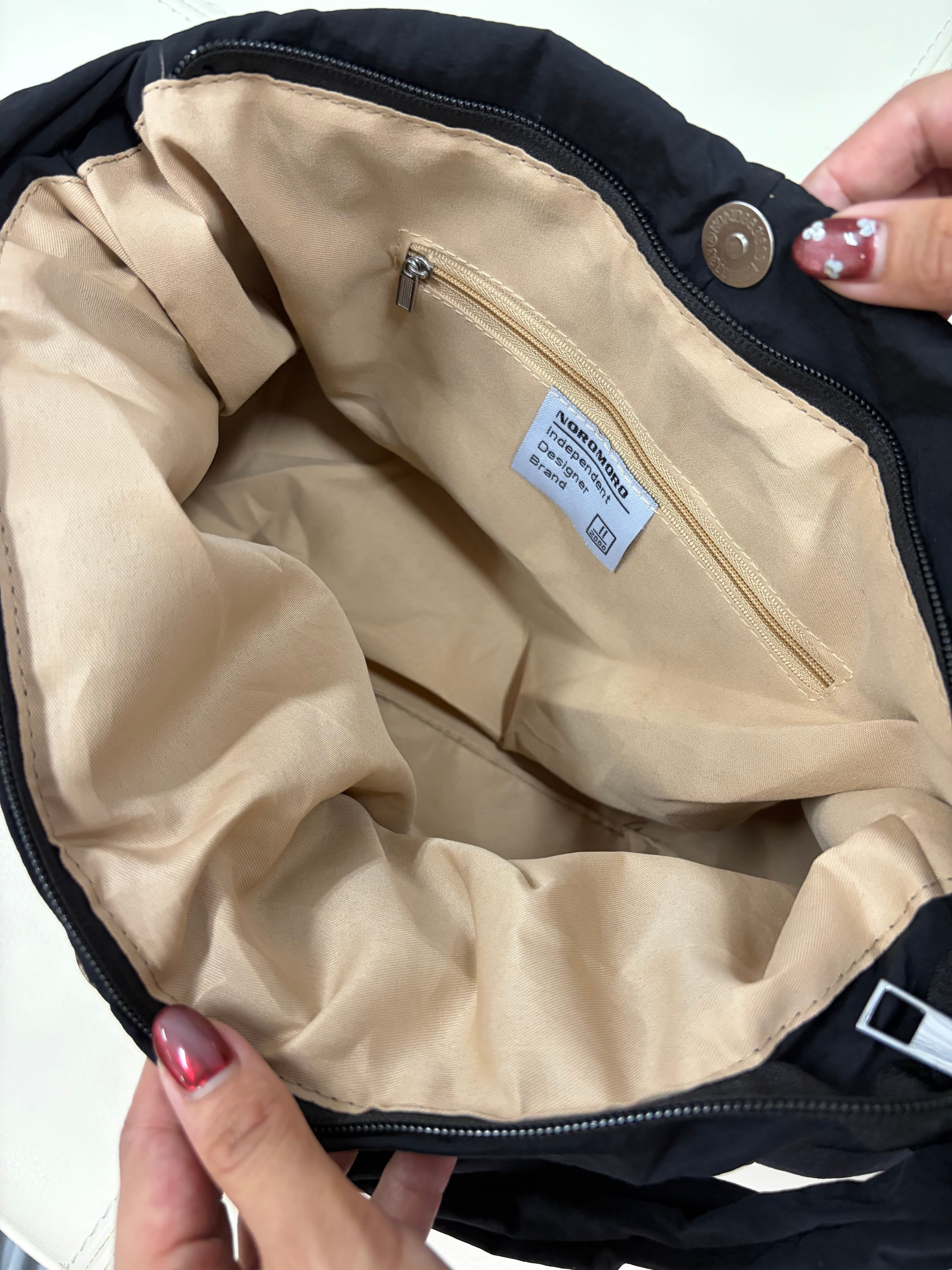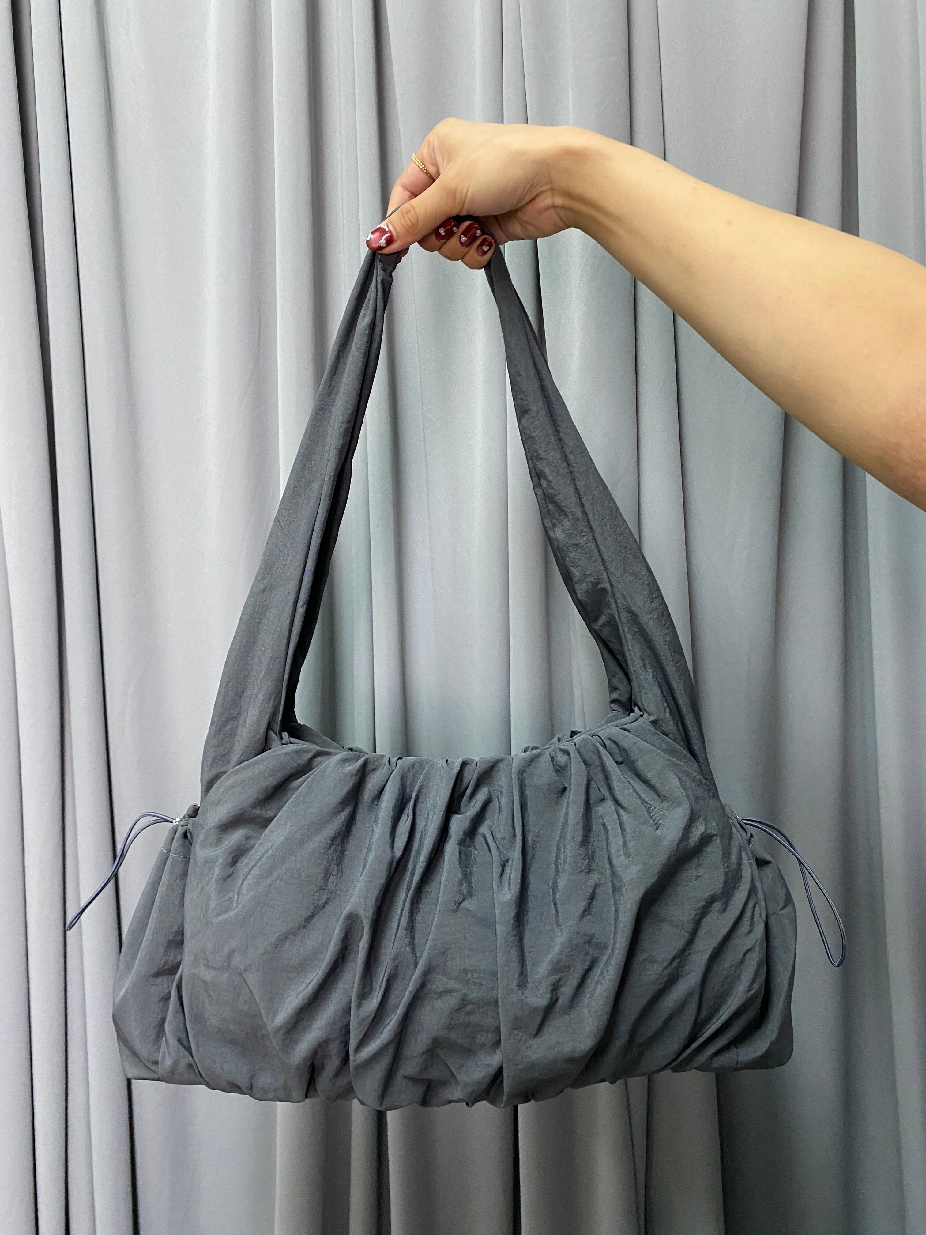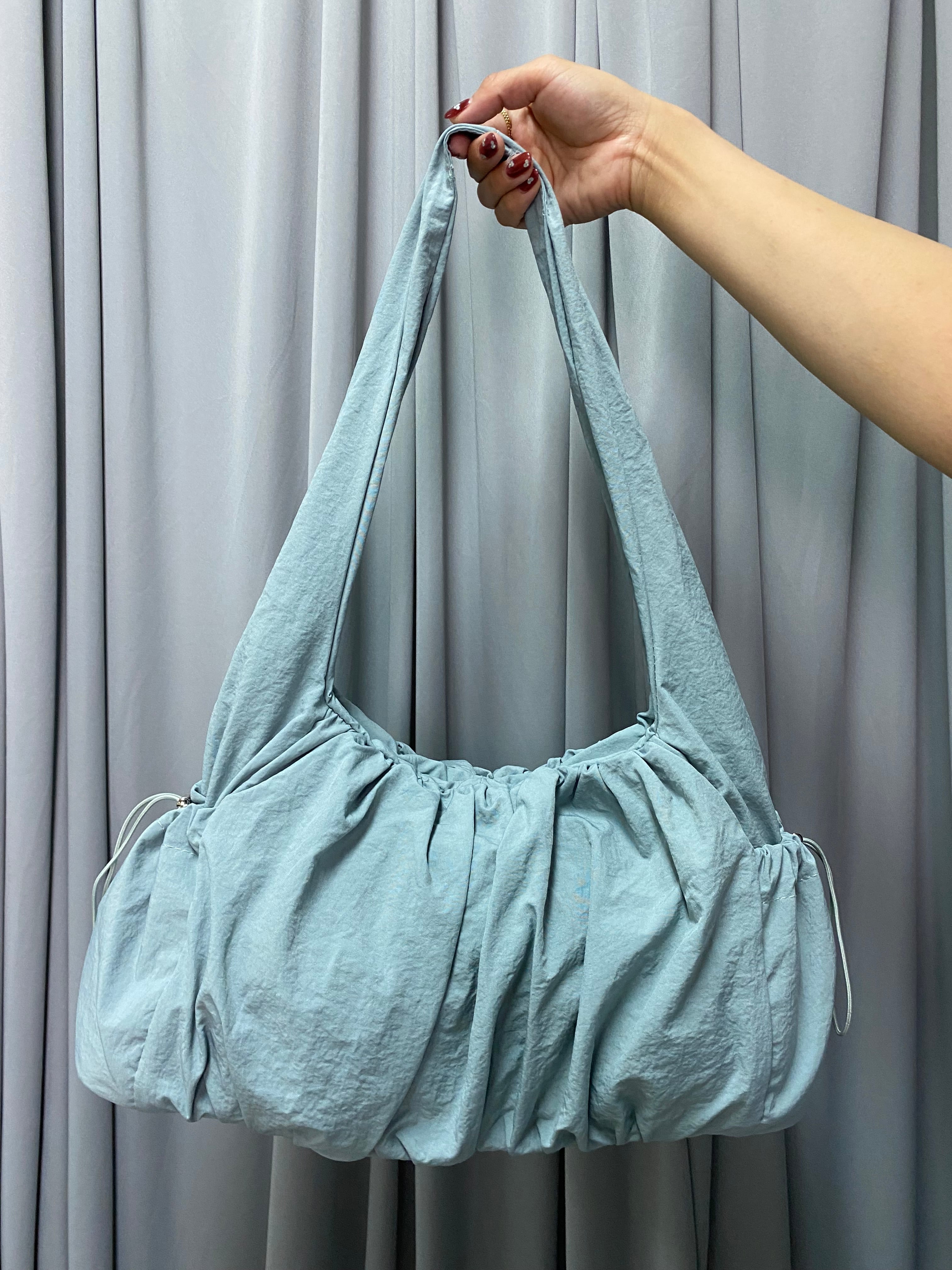 “くしゅっ”としたフォルムがかわいいナイロントートバック。