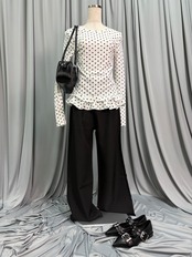 ドット×裾フリルで、フェミニンさをプラス。