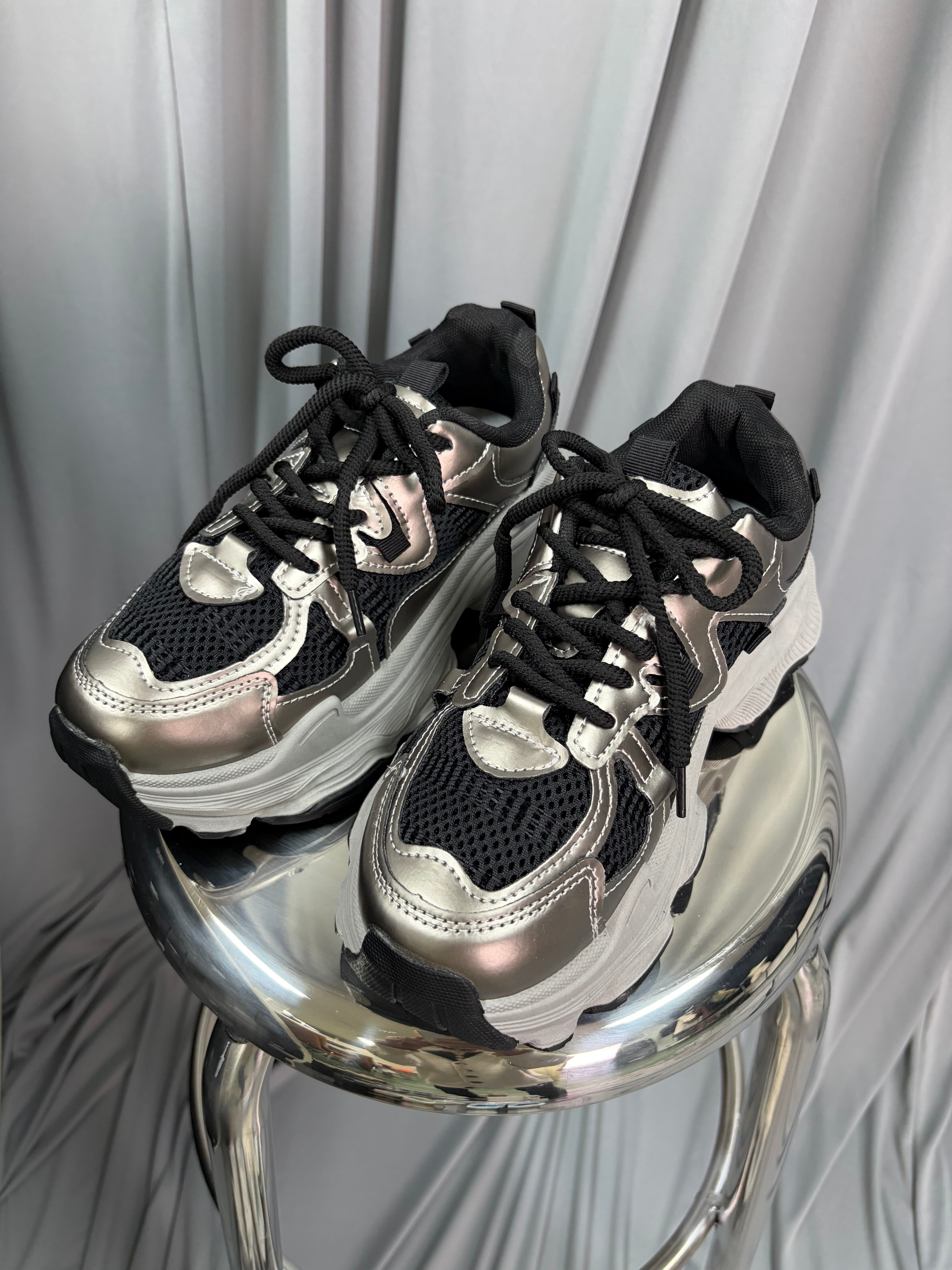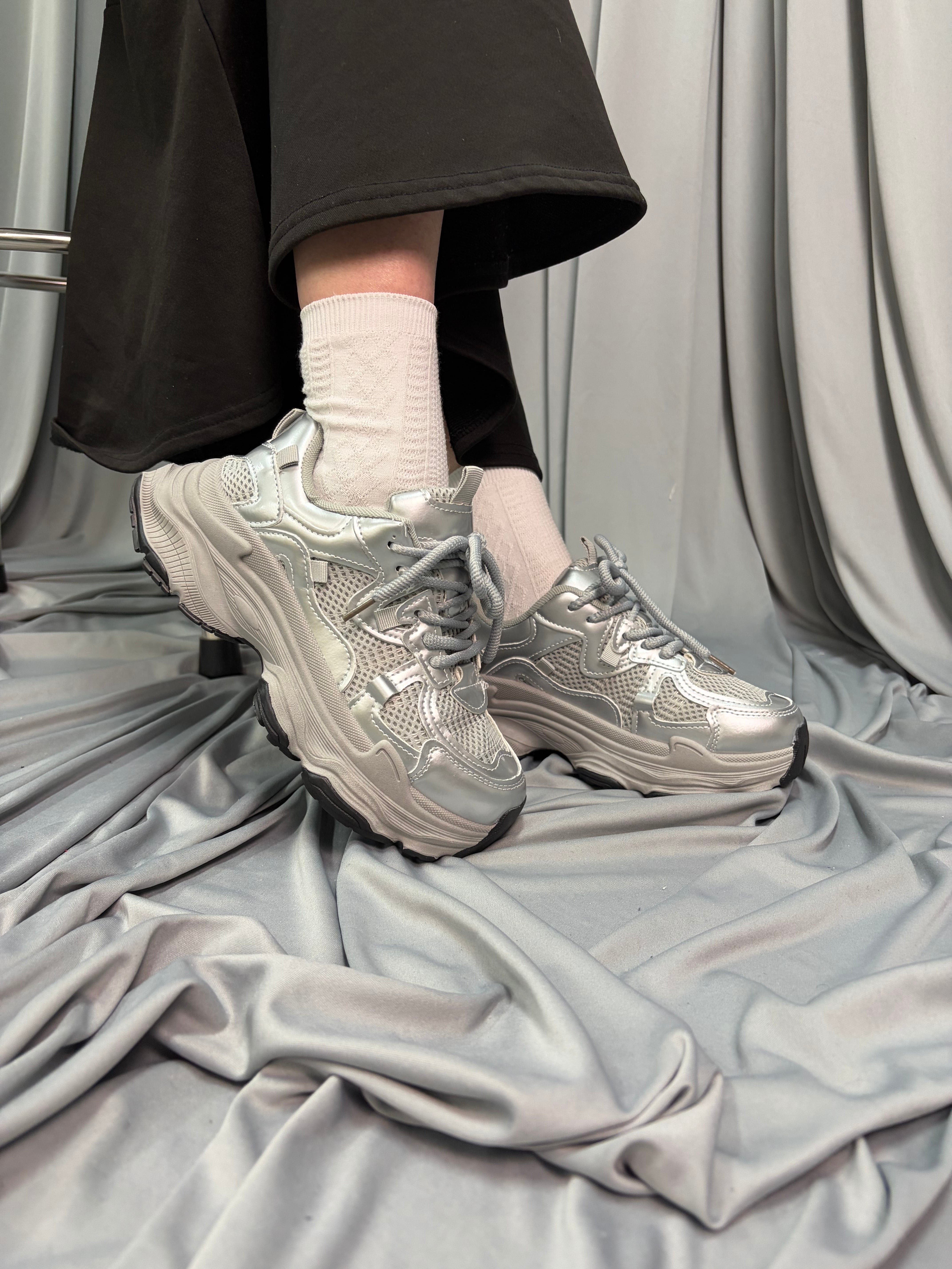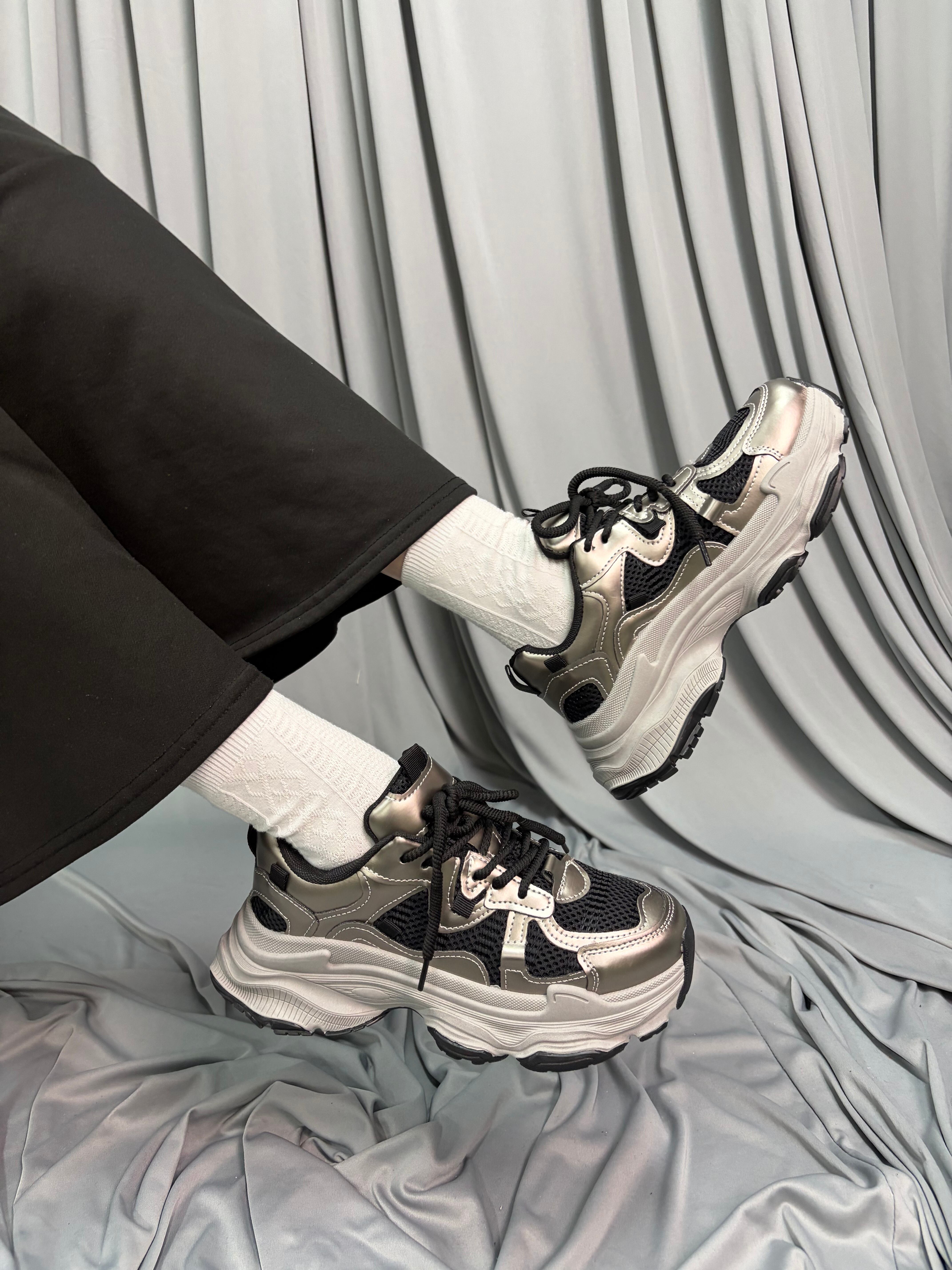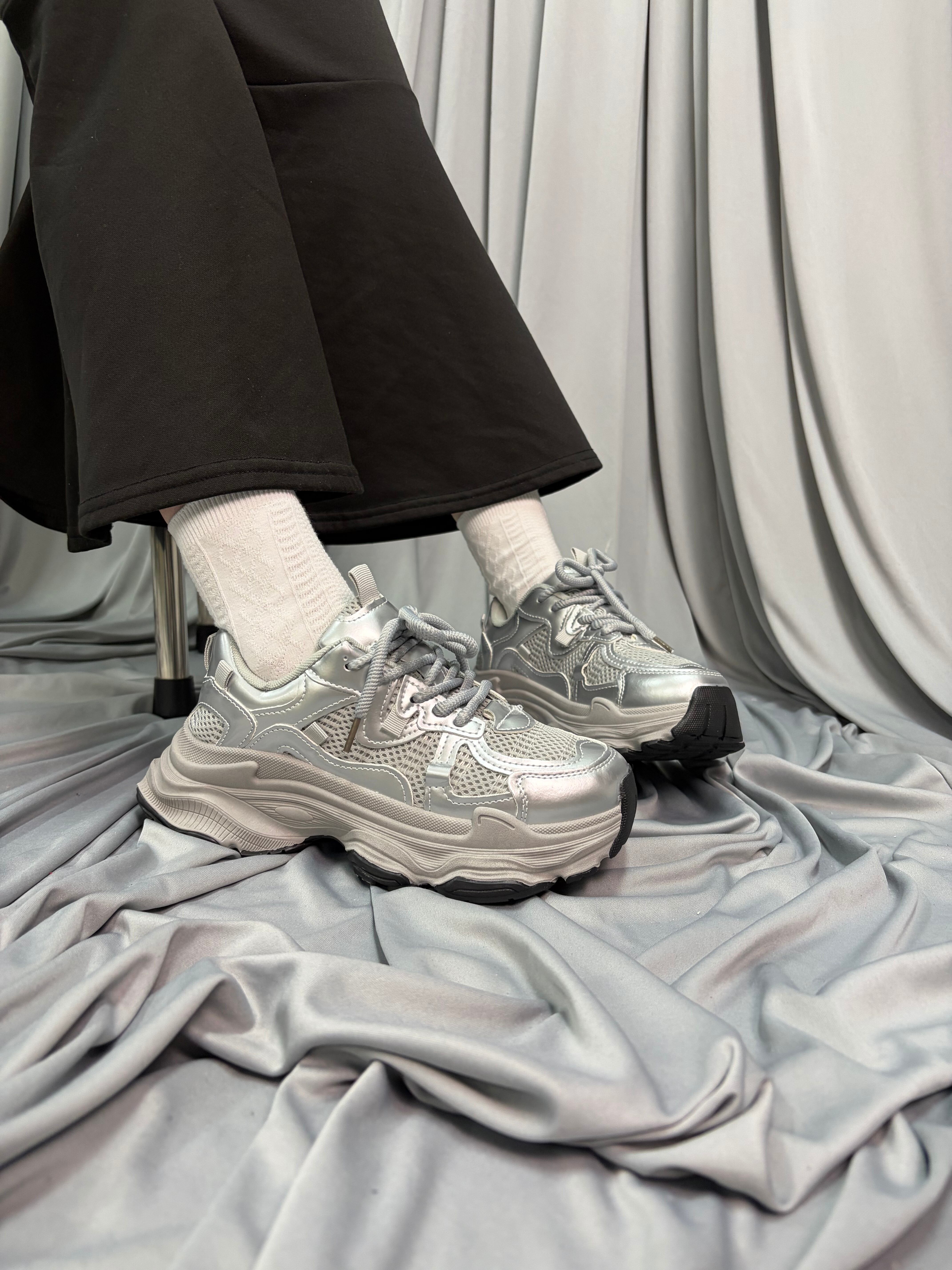 メタリックの存在感が光る、トレンド感抜群のダッドスニーカー。