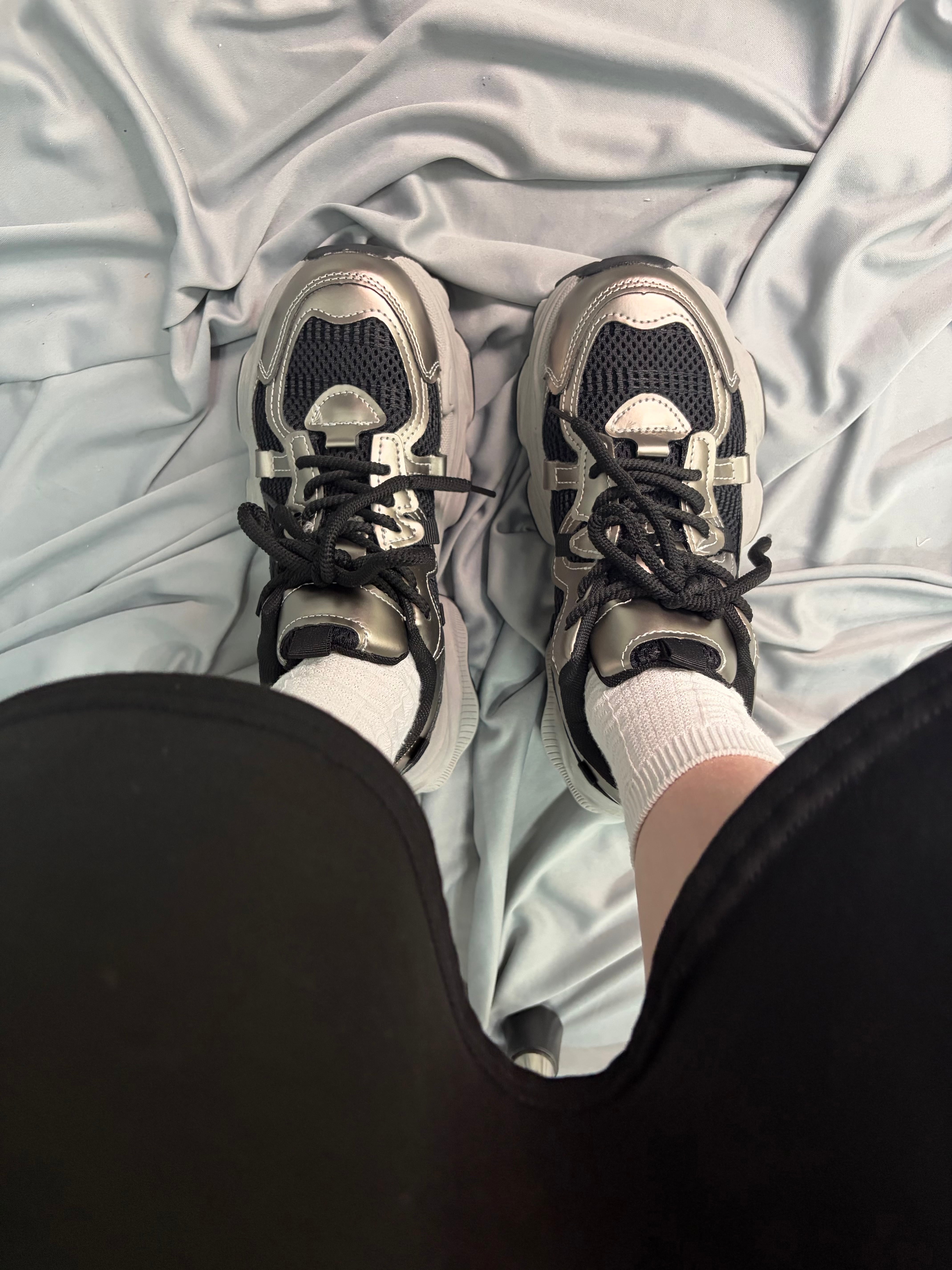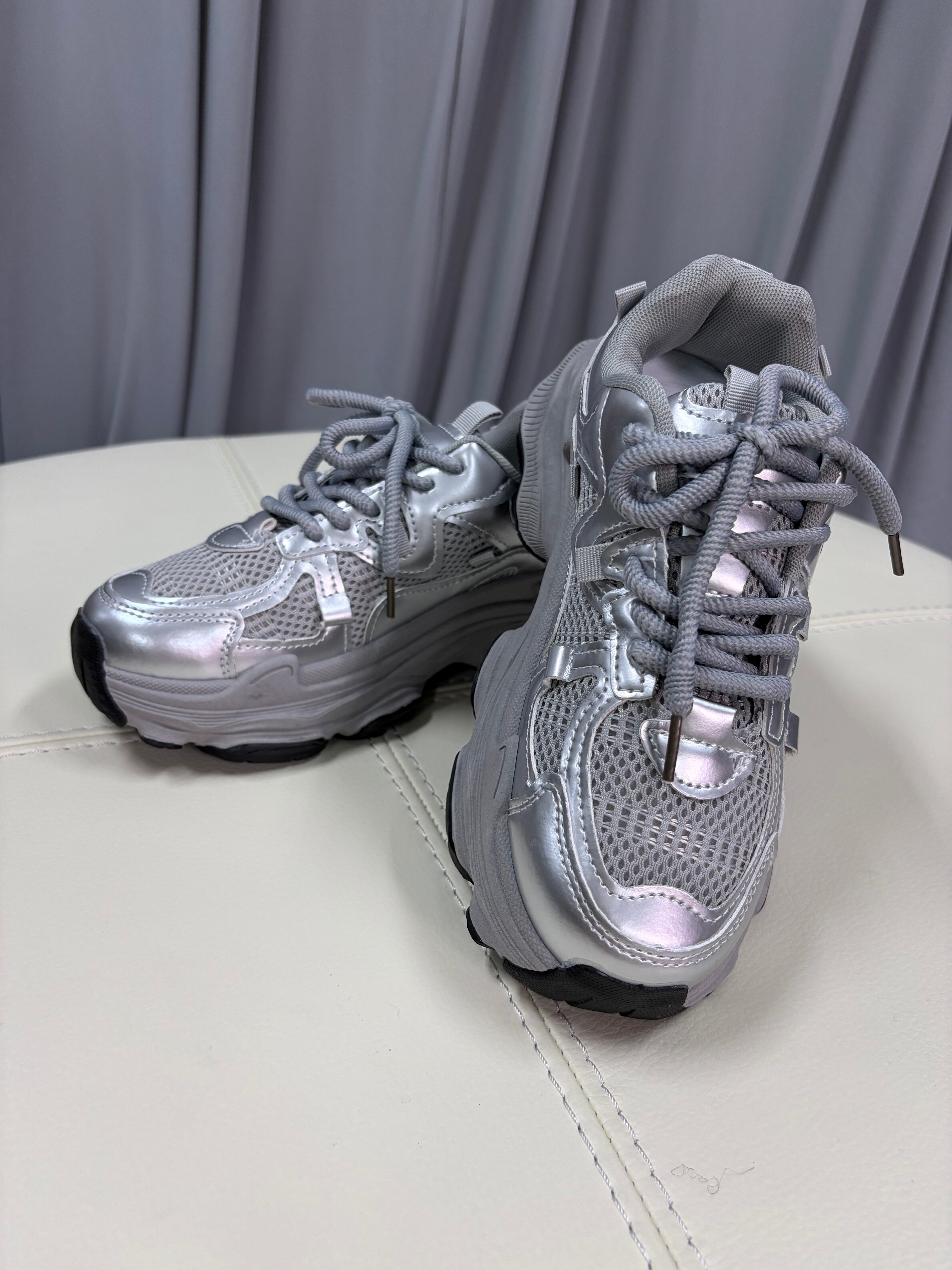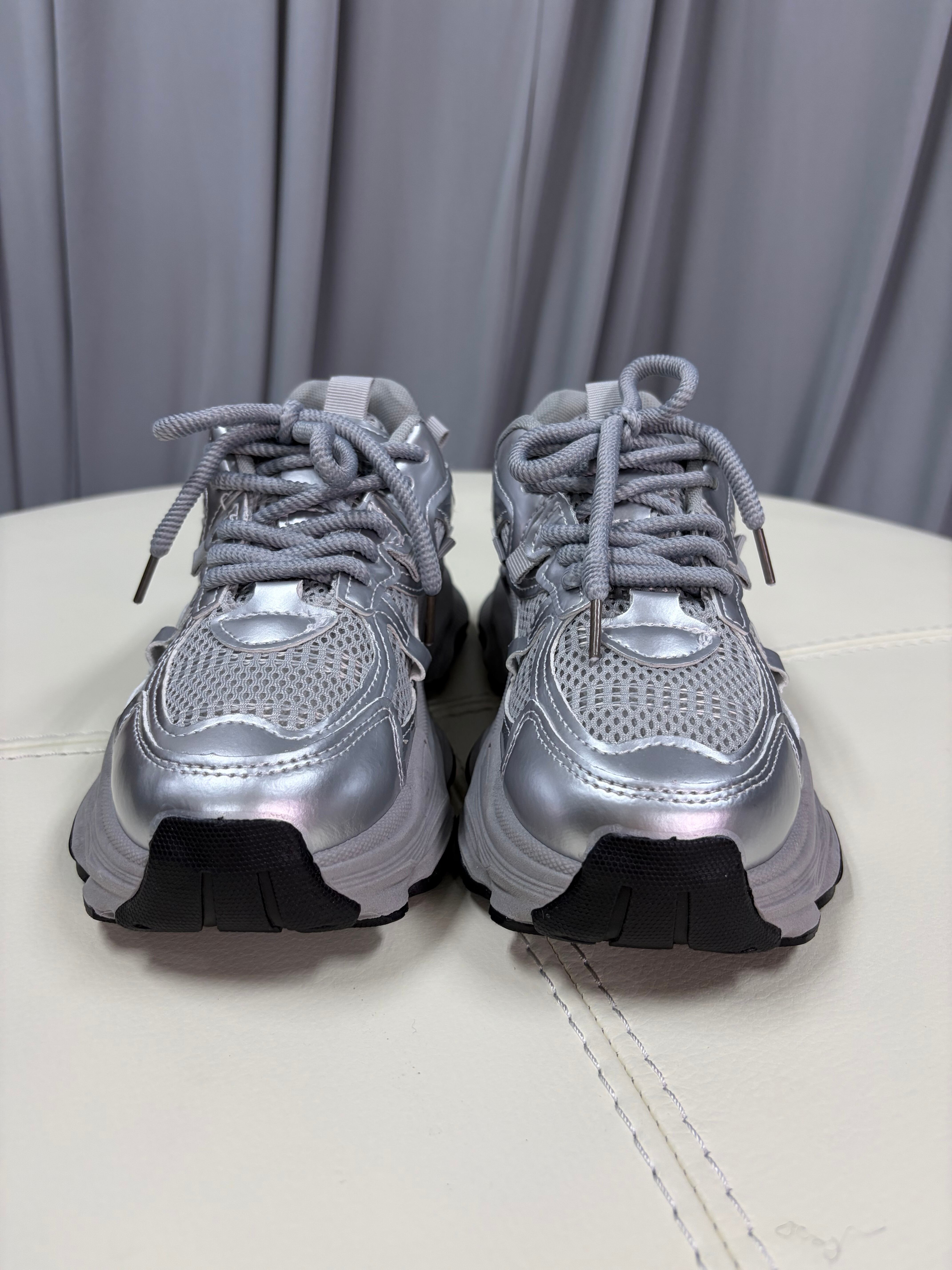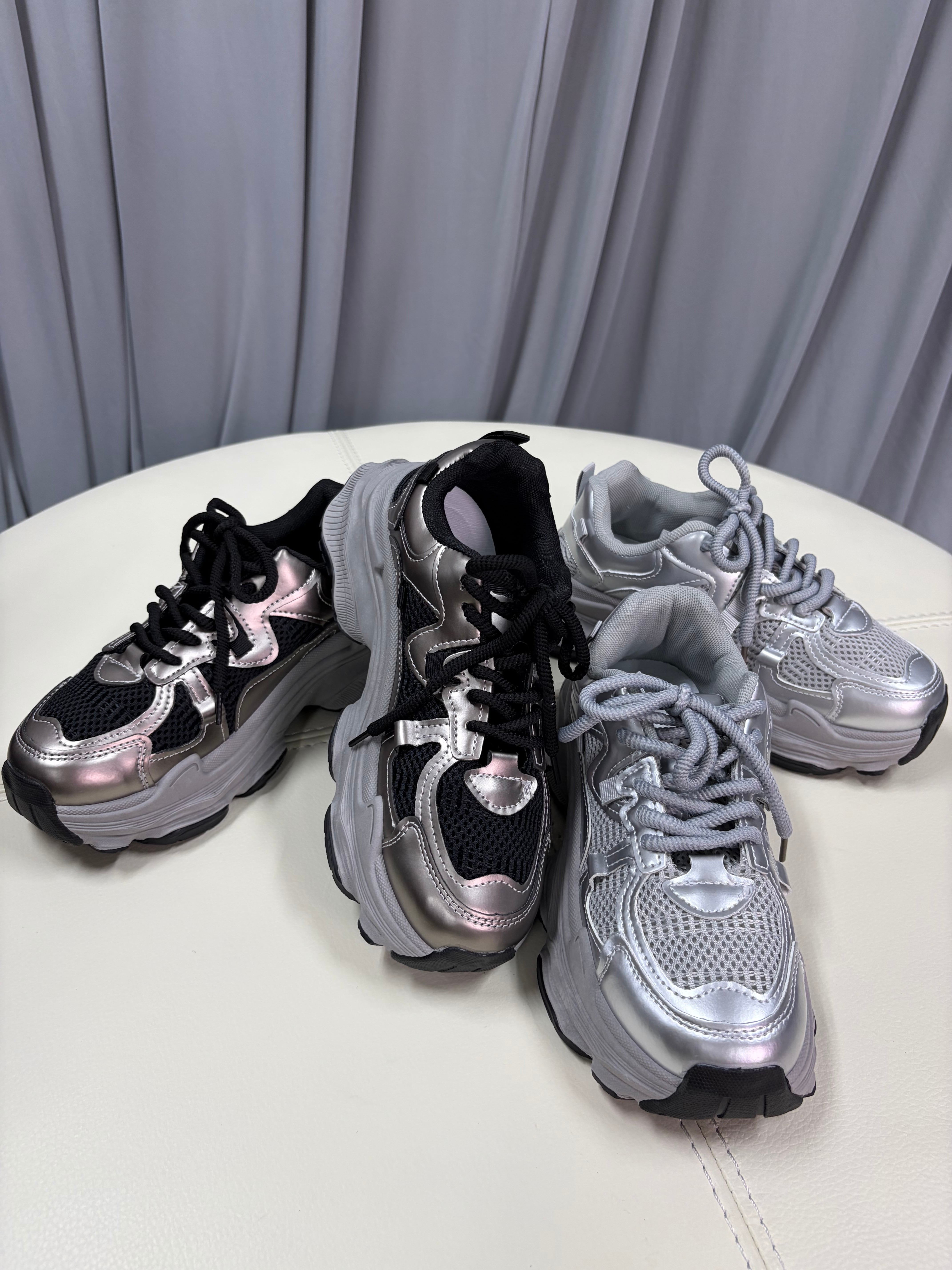 メタリックの存在感が光る、トレンド感抜群のダッドスニーカー。