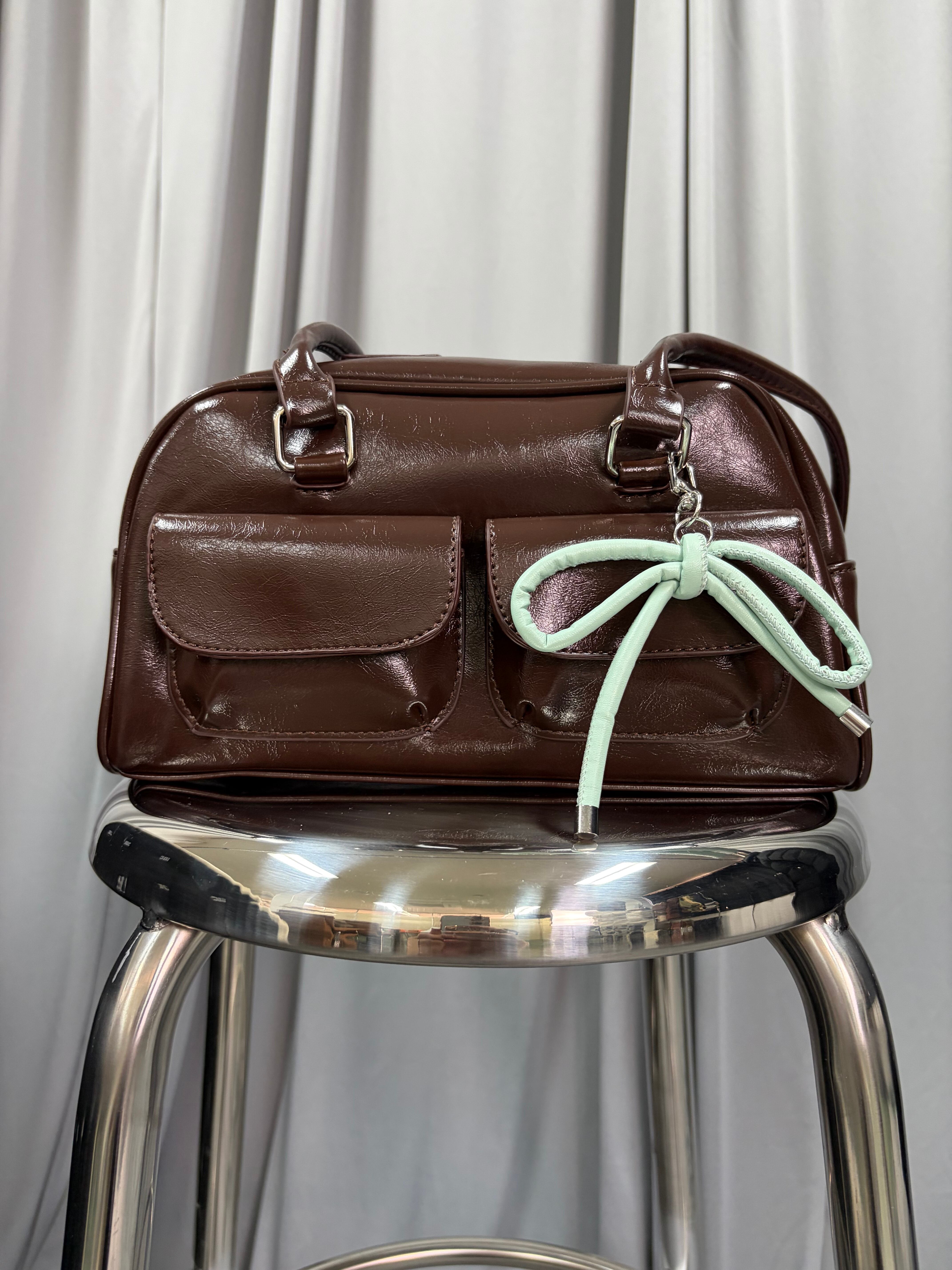 甘さ控えめのレザーデザインが大人っぽいリボンチャーム。