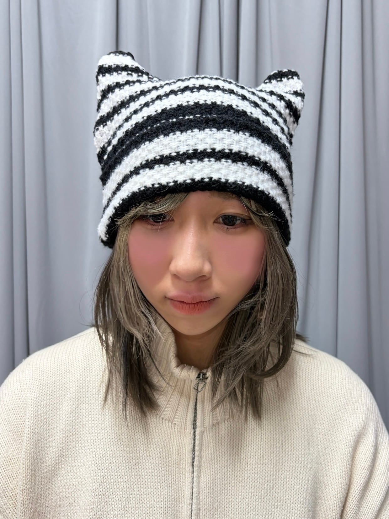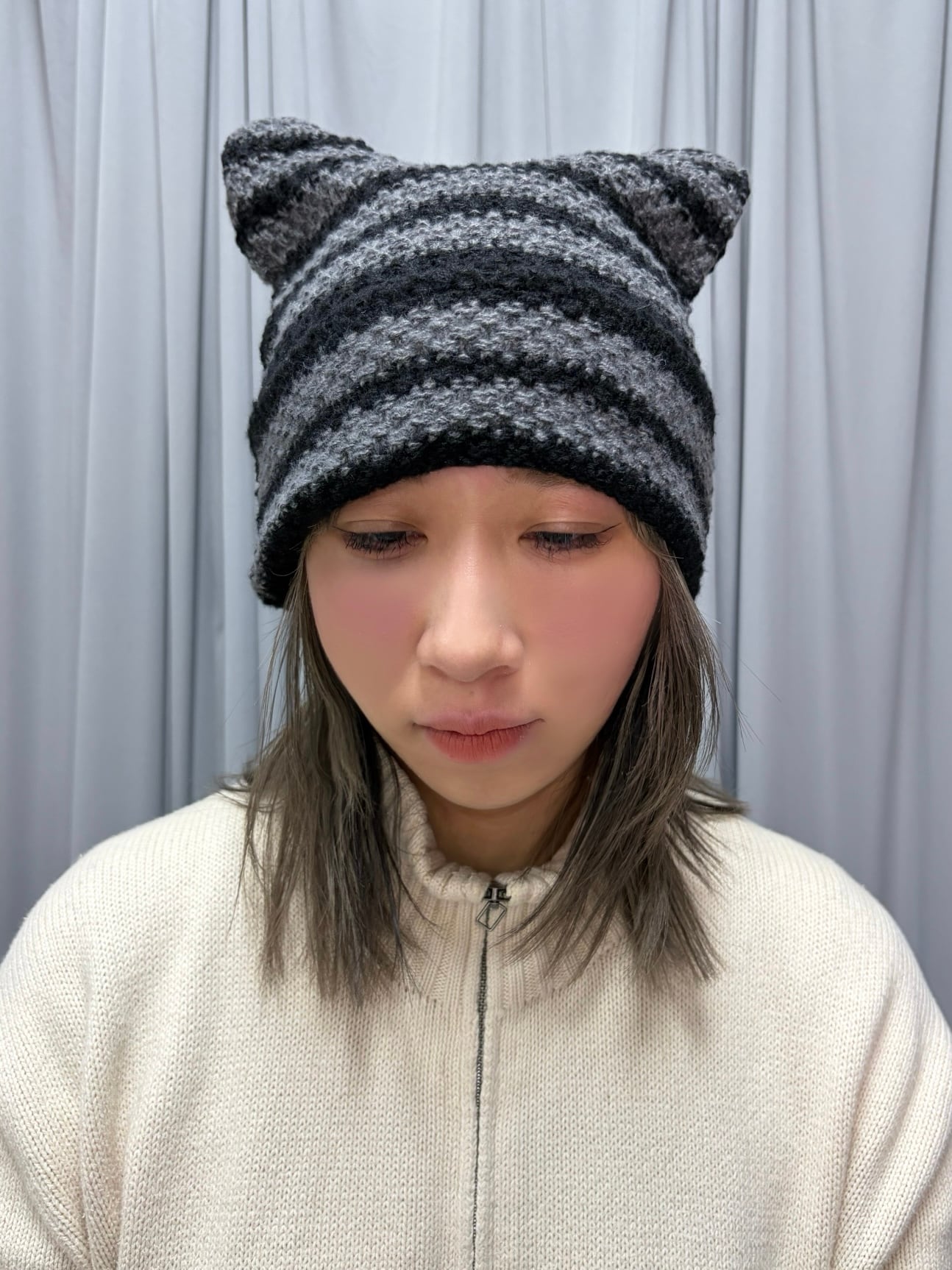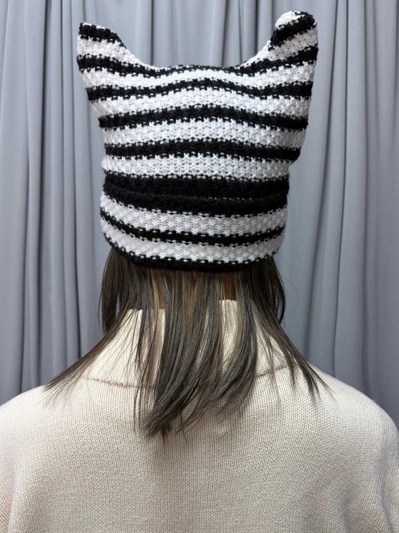 猫耳ボーダーニットキャップ
