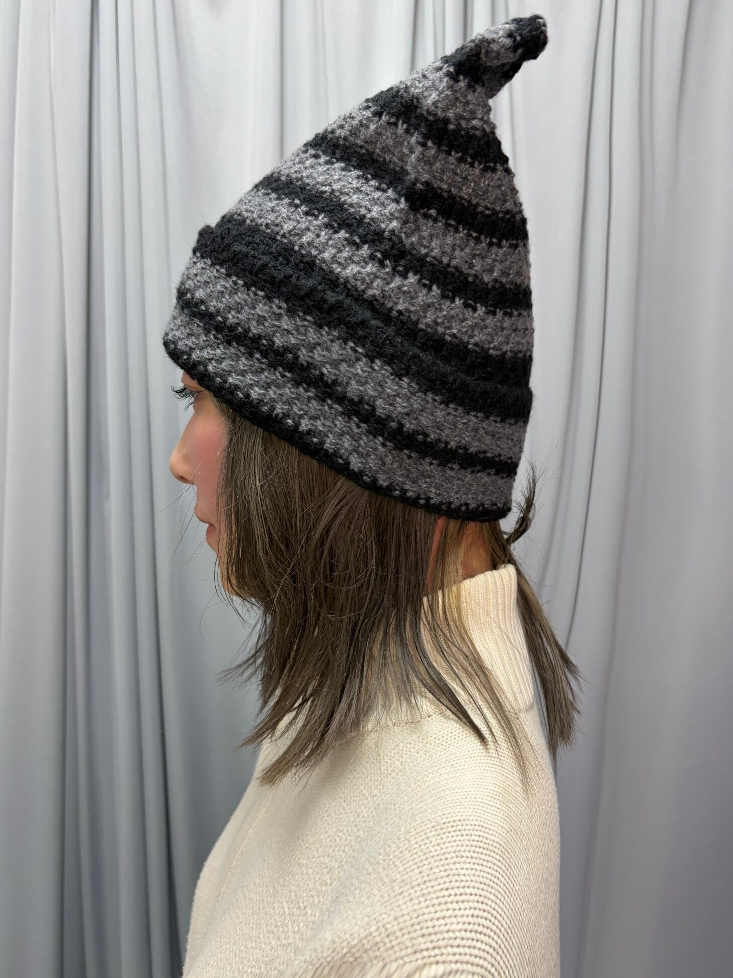 猫耳シルエットが可愛い、遊び心たっぷりのニットキャップ。