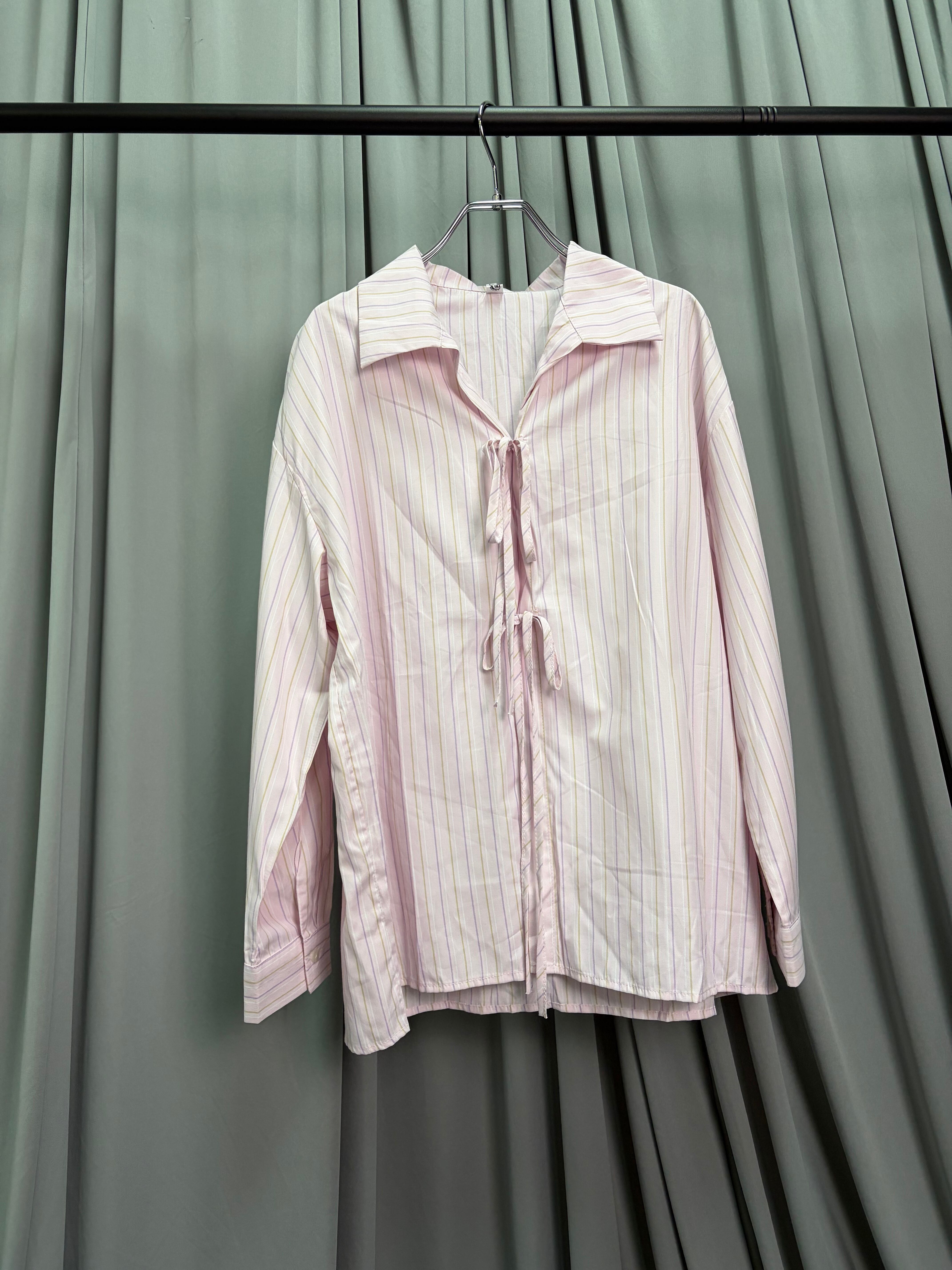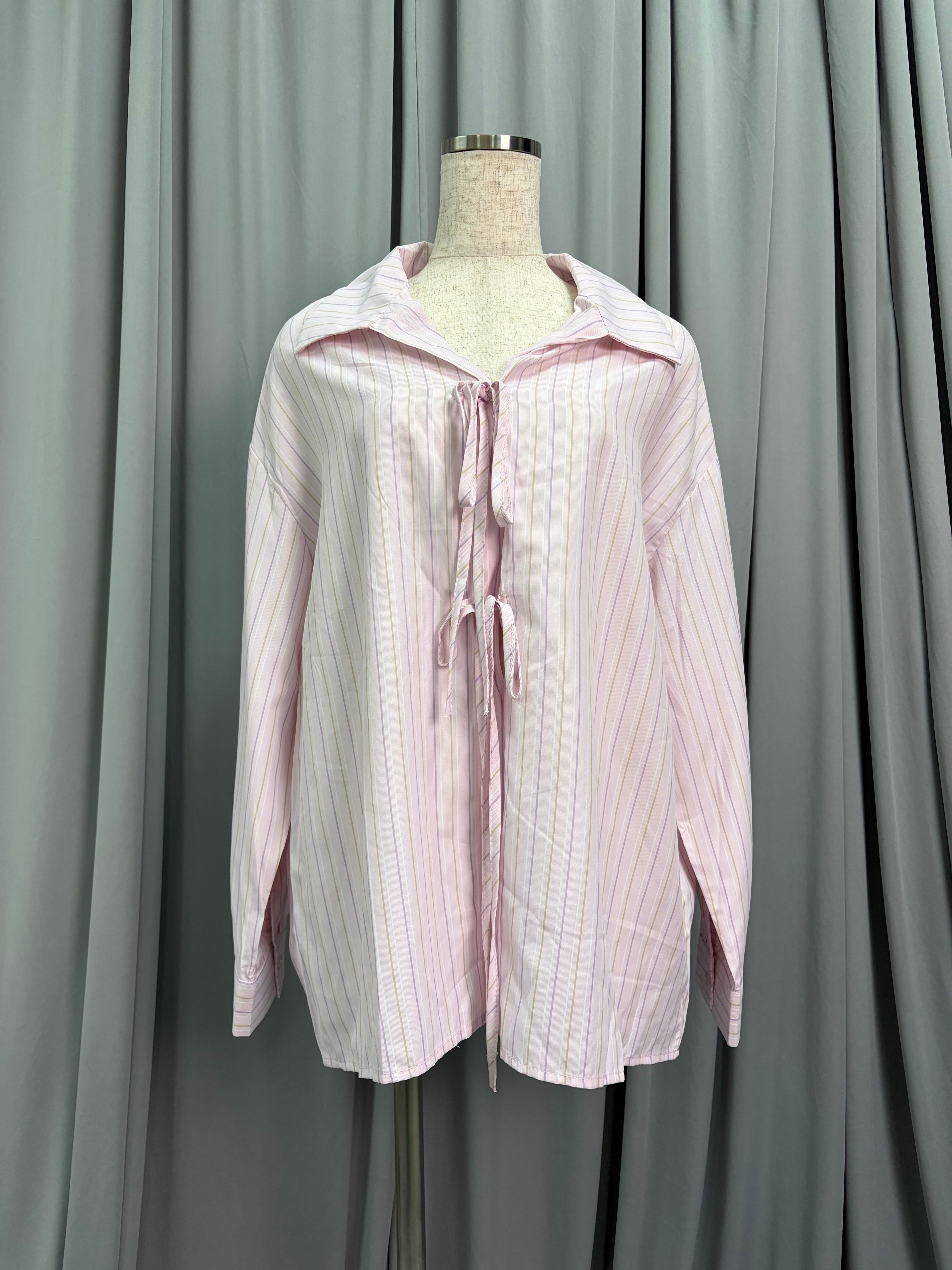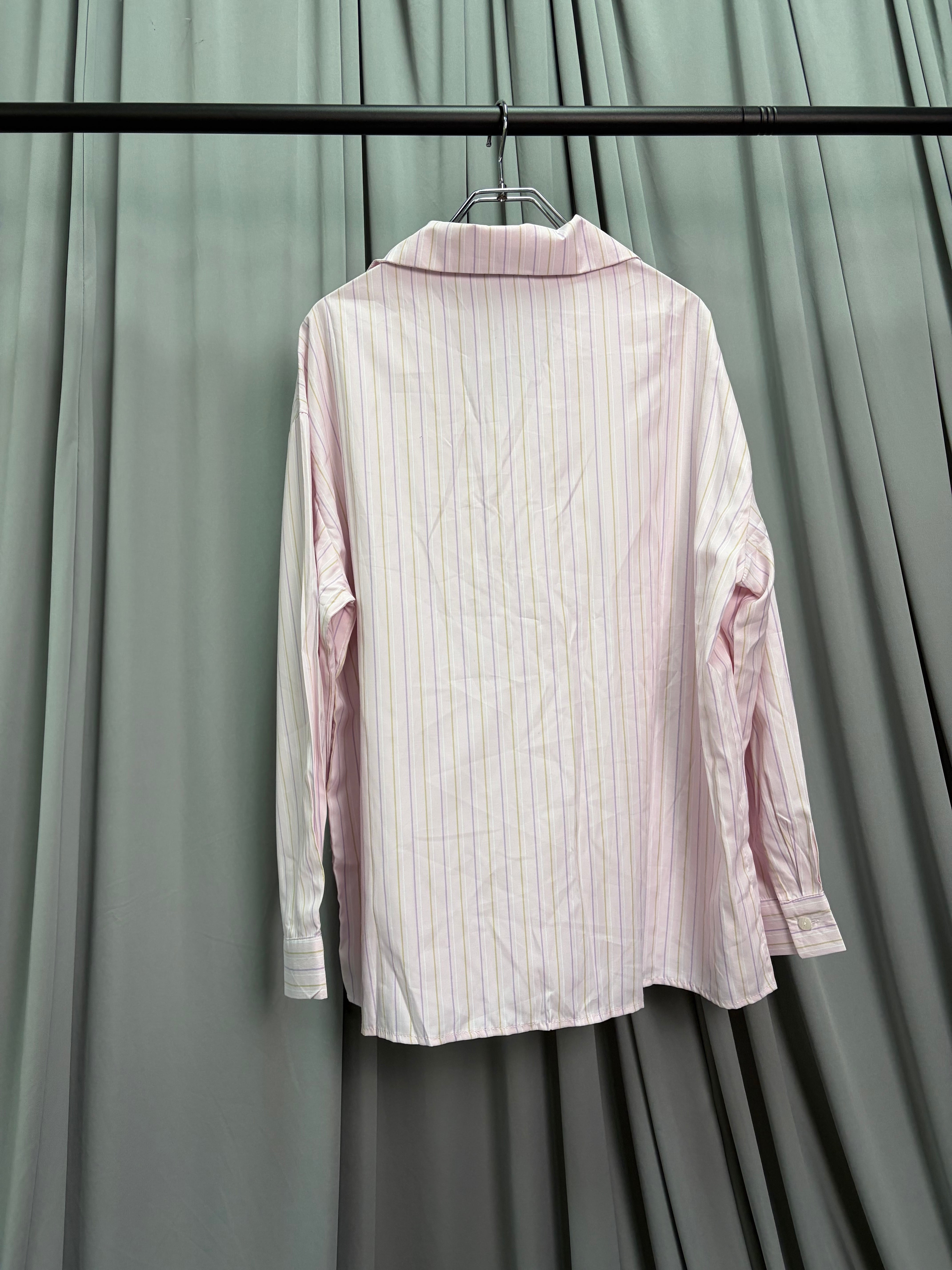 淡いカラーとストライプ柄がやさしい印象のシャツトップス。