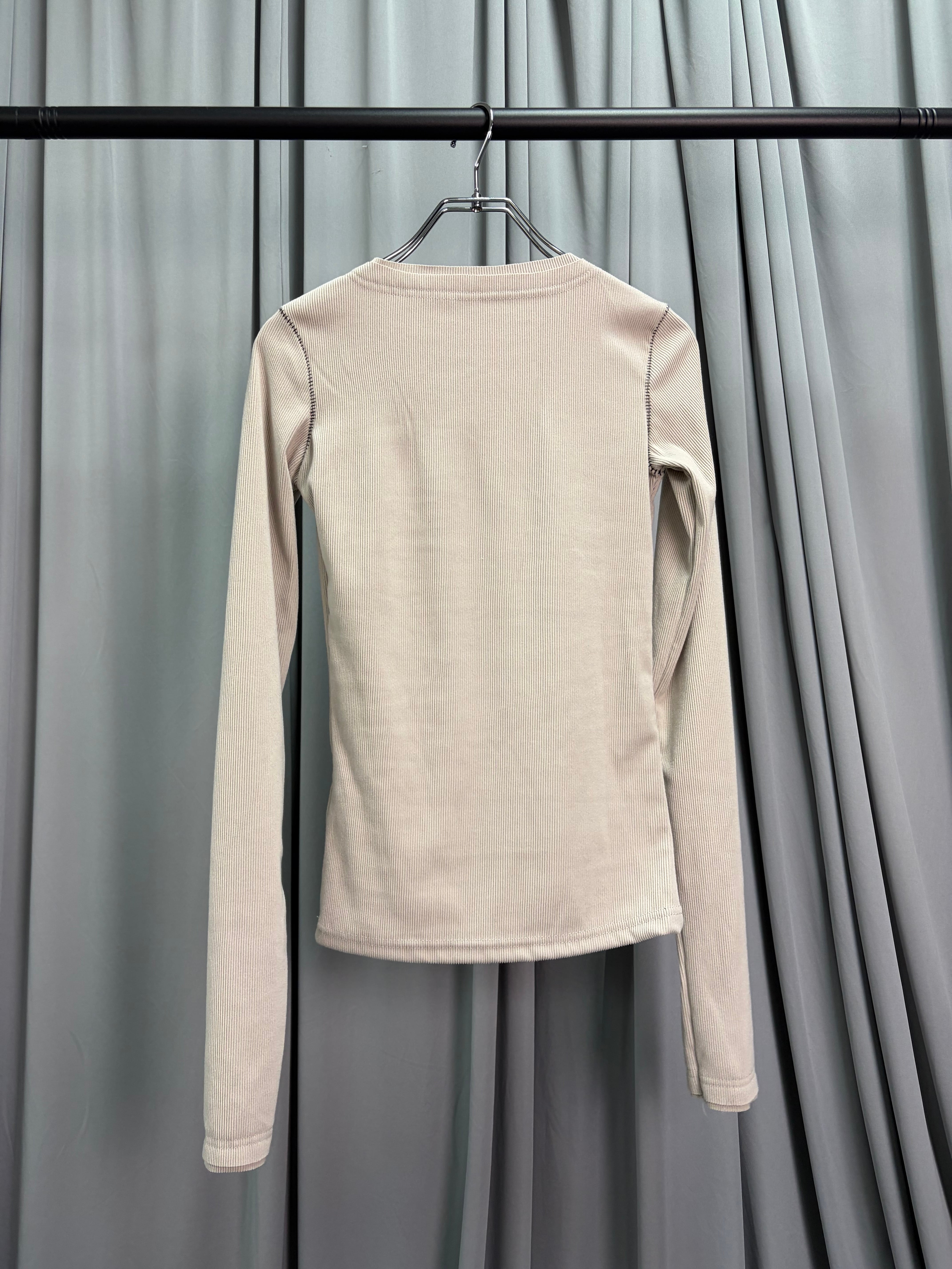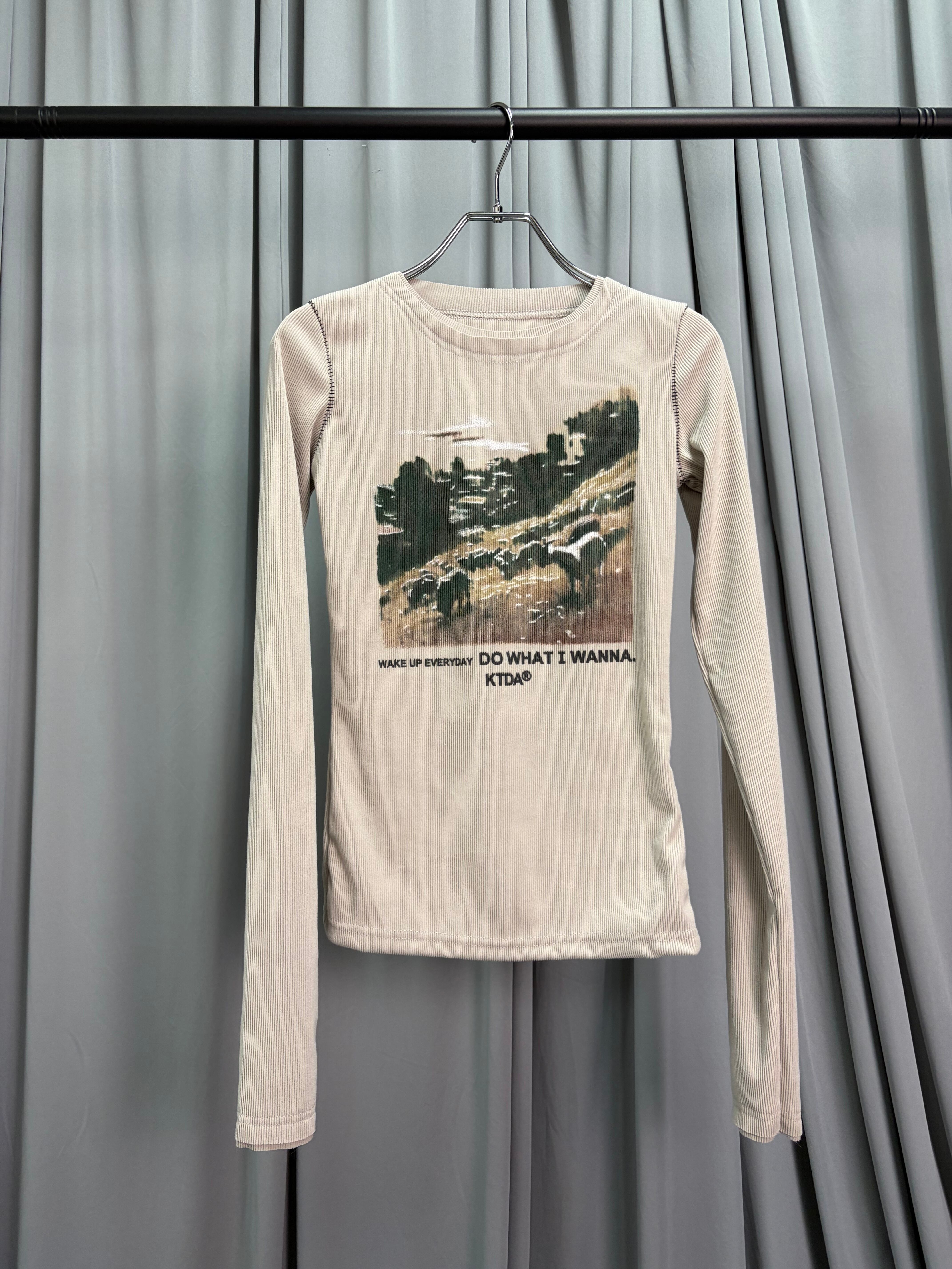 フォトプリントが目を引く、コンパクトなリブトップス。
