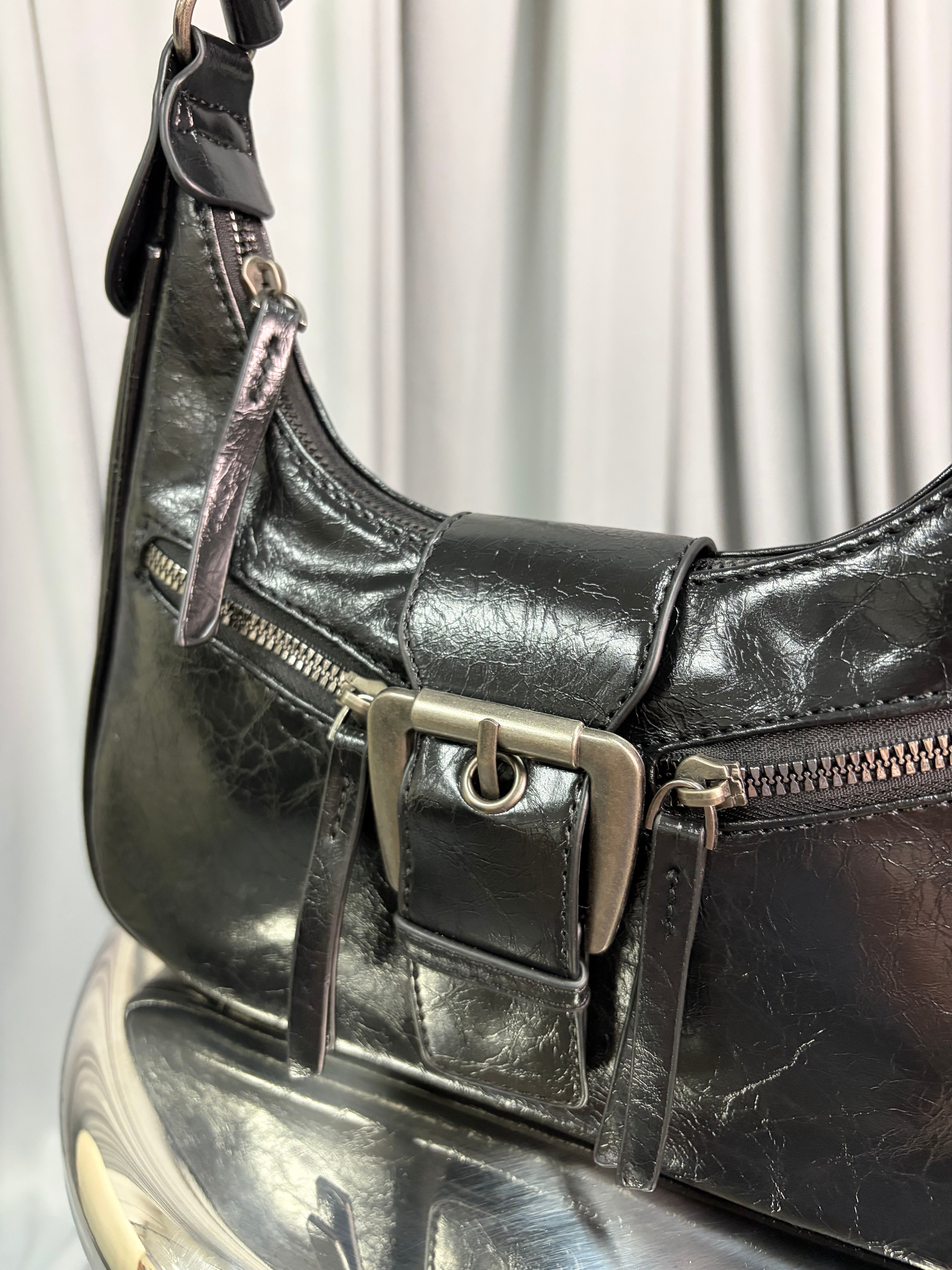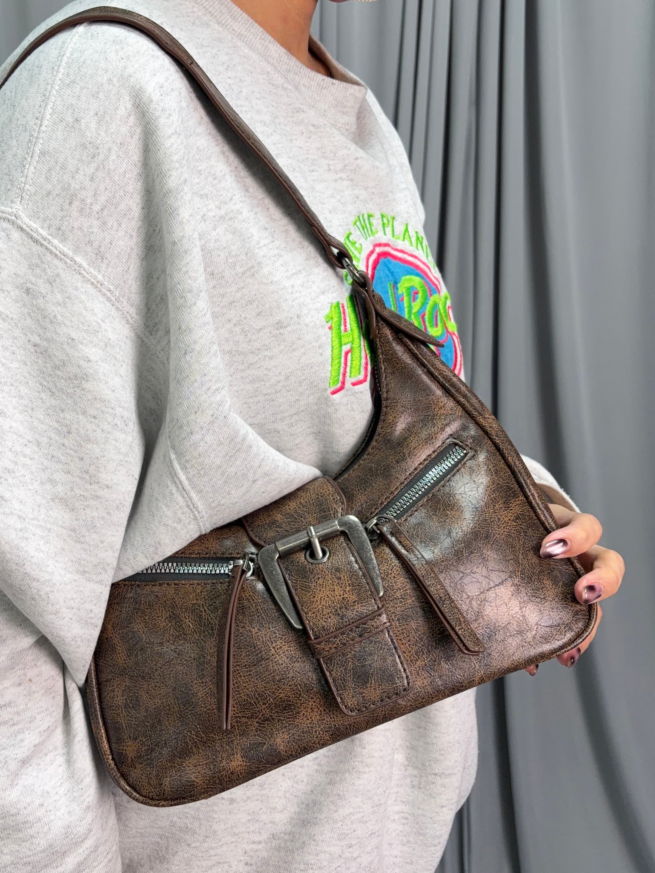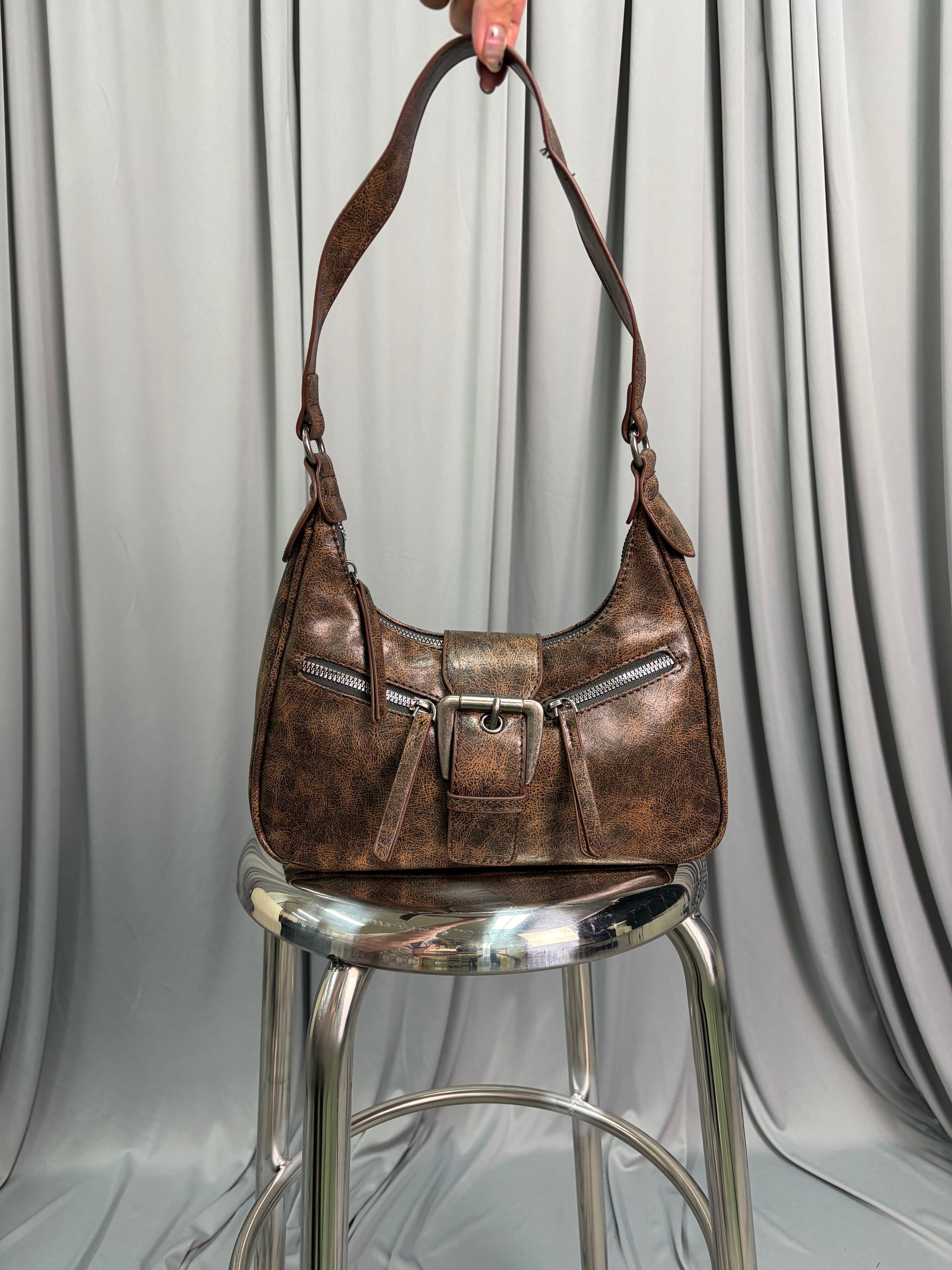 ヴィンテージ感のある風合いが魅力の、コンパクトなショルダーバッグ。